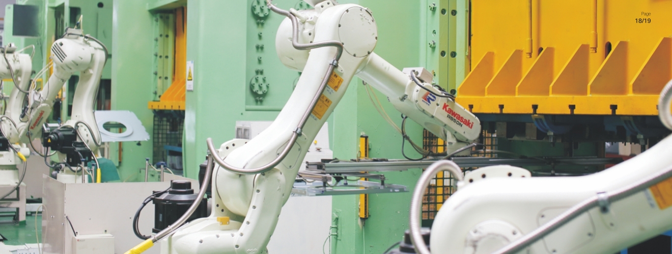 隆深機(jī)器人在汽車整車制造行業(yè),全面提供沖壓、焊 裝、噴涂和總裝車間需要的解決方案、生產(chǎn)線和設(shè) 備,其典型解決方案有全套沖壓自動(dòng)化生產(chǎn)線,該自 動(dòng)化生產(chǎn)線解決了大型工件無法安全上下料的難題, 極大提高壓力機(jī)生產(chǎn)線的效率和沖壓工件表面質(zhì)量; 同時(shí)還有白車身自動(dòng)化生產(chǎn)線,該自動(dòng)化生產(chǎn)線在焊 裝車間使用機(jī)器人激光焊接、激光復(fù)合焊、伺服點(diǎn) 焊、弧焊、涂膠、裝配,搬運(yùn)和鉆孔等工藝,實(shí)現(xiàn)白 車身的全自動(dòng)化生產(chǎn)。 在汽車零部件行業(yè),主要是針對(duì)發(fā)動(dòng)機(jī)、變速箱等傳 統(tǒng)動(dòng)力總成系統(tǒng),以及以電機(jī)、電池、電控為核心的 新能源動(dòng)力系統(tǒng)的裝配及測(cè)試;另外也可以對(duì)應(yīng)各種 其他零部件的搬運(yùn)、裝配、檢測(cè)等工藝。隆深機(jī)器人 的汽車零部件自動(dòng)化生產(chǎn)線通過整體優(yōu)化設(shè)計(jì)、各種 工藝設(shè)備的系統(tǒng)集成、以及信息監(jiān)測(cè)和在線故障診斷 等技術(shù)的有效融合,實(shí)現(xiàn)汽車零部件的傳輸、抓取、 搬運(yùn)、焊接、組裝、噴涂、檢測(cè)、在線管理等過程的 自動(dòng)化作業(yè),大幅度提高產(chǎn)品生產(chǎn)效率和品質(zhì)。