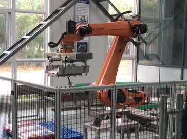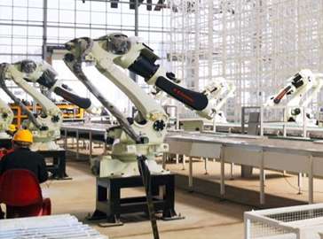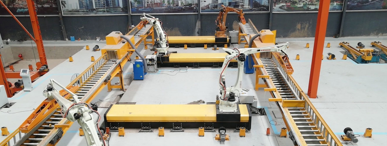 新型建筑材料生產線,可完成模塊裝配、參數 化墻建造、切削等作業。