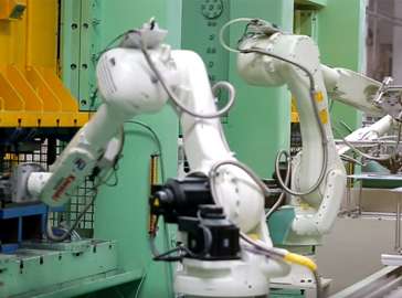 在工程機械行業,隆深機器人在電弧跟蹤、 尋位、多層多道焊接方面有了深入研究,實 現了對泵車支腿、塔機主弦梁自動化焊接、 多臺機器人協作焊接。